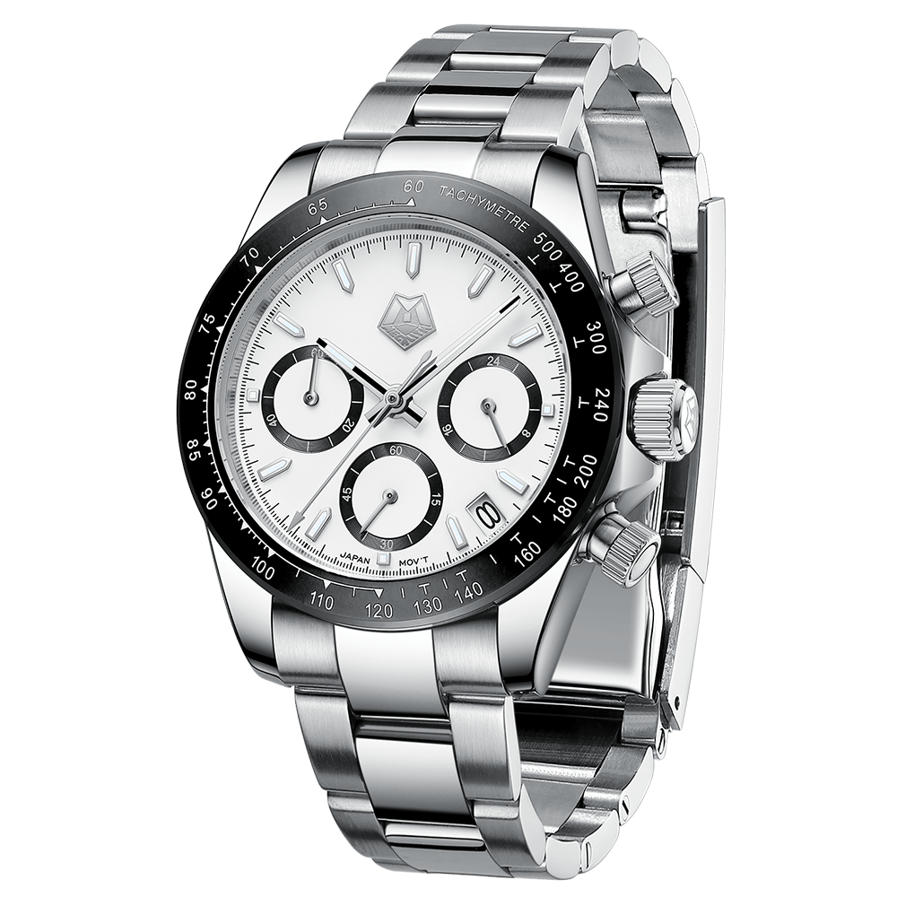 Megalith 8389m men watches with stainless steel strap, cool look of the Solid Steel case& sub-dial and the puristic and clear line of the quartz chronograph watch designed complement each other ideally and guarantee a glittering appearance.