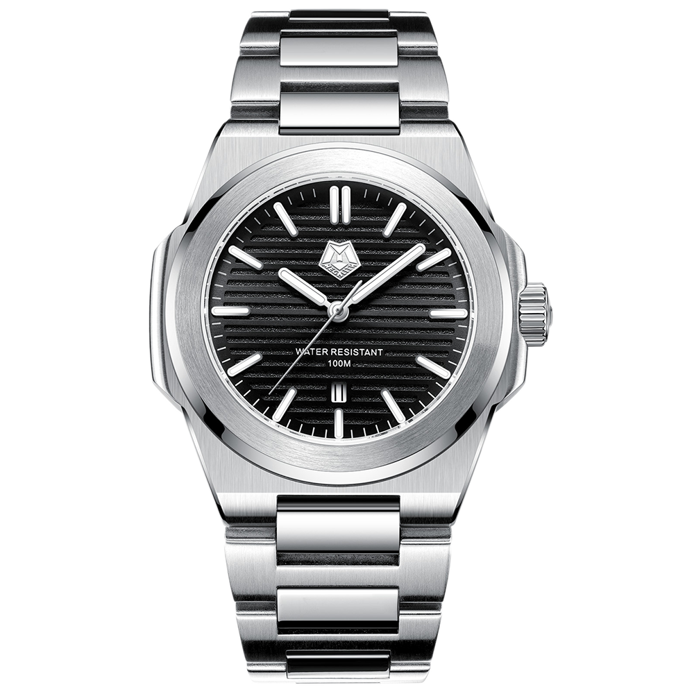 Megalith 8399m men watches with stainless steel strap, cool look of the Solid Steel case& concise dial and the puristic and clear line of the quartz chronograph watch designed complement each other ideally and guarantee a glittering appearance.